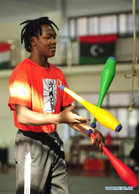 A student from Sierra Leone practises at Wuqiao Acrobatic Art School in Wuqiao County of Cangzhou, north China's Hebei Province, Nov. 18, 2019. Known as the "home of acrobatics" in China, Wuqiao County has become increasingly attractive to aspiring foreigners seeking an acrobatic career. (Xinhua/Zhu Xudong)