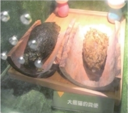 Zookeepers collect fresh feces in the morning to put in the display. According to information that giant panda feces are a natural raw material and non-hazardous to humans, domestic companies have developed the use of giant panda feces to produce napkins.