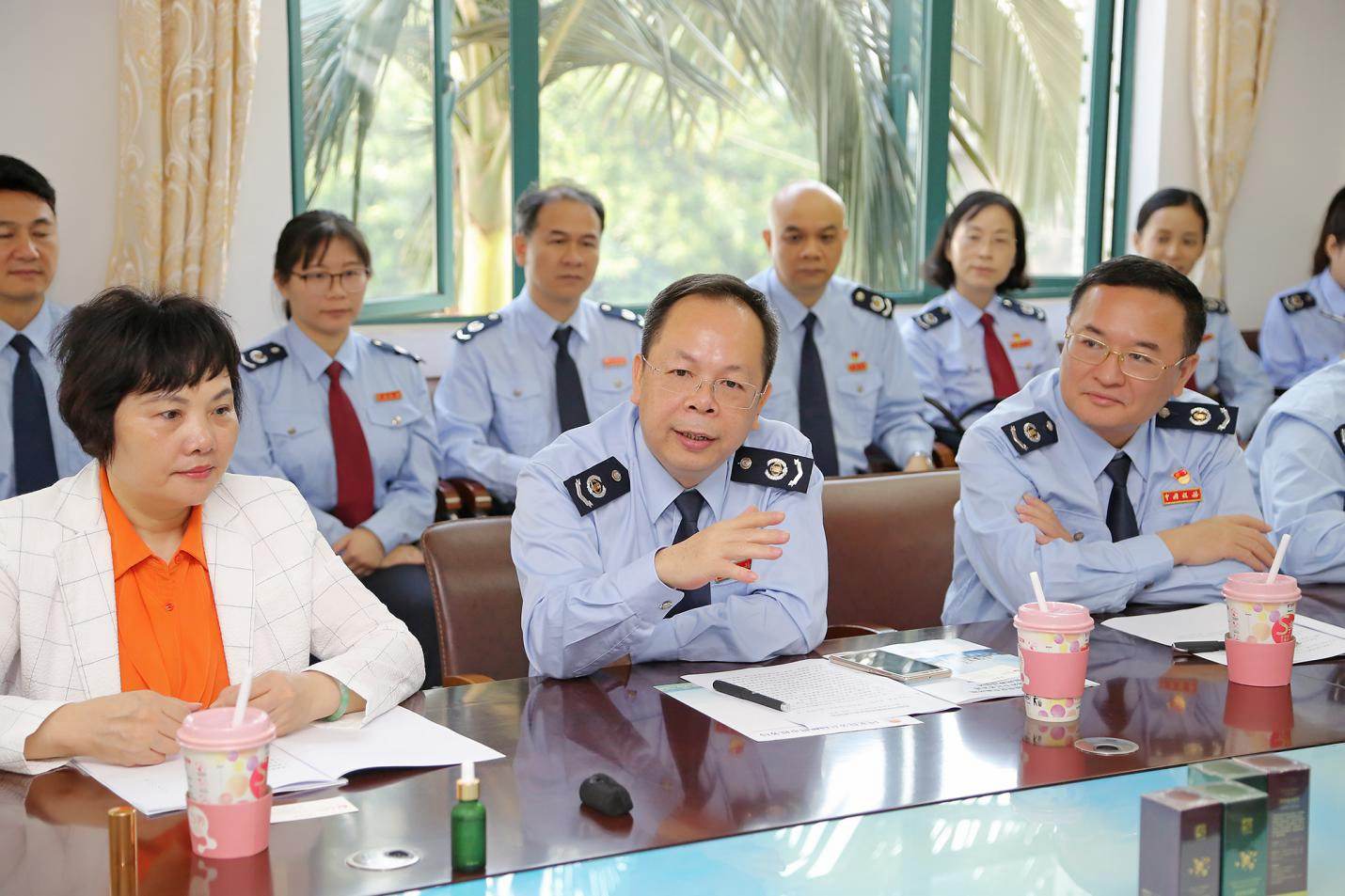 Hong Xiao (center), Director of Wuzhou Taxation Bureau, sits down for an interview with People’s Daily Online. (Photo/People’s Daily Online)