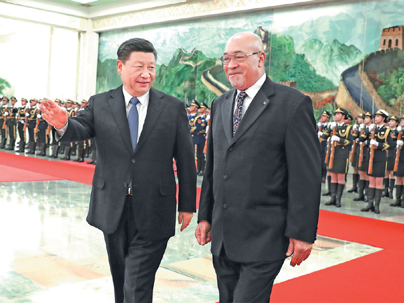 Before their talks, Xi hosted a grand ceremony to welcome the Caribbean leader.