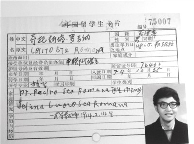 Jose Santiago Sta. Romana's ID when he studied in China (Photo provided by Jose Santiago Sta. Romana)