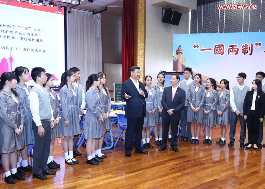 Xi made the remarks in the school's auditorium after watching a Chinese history class themed "'one country, two systems' and Macao."