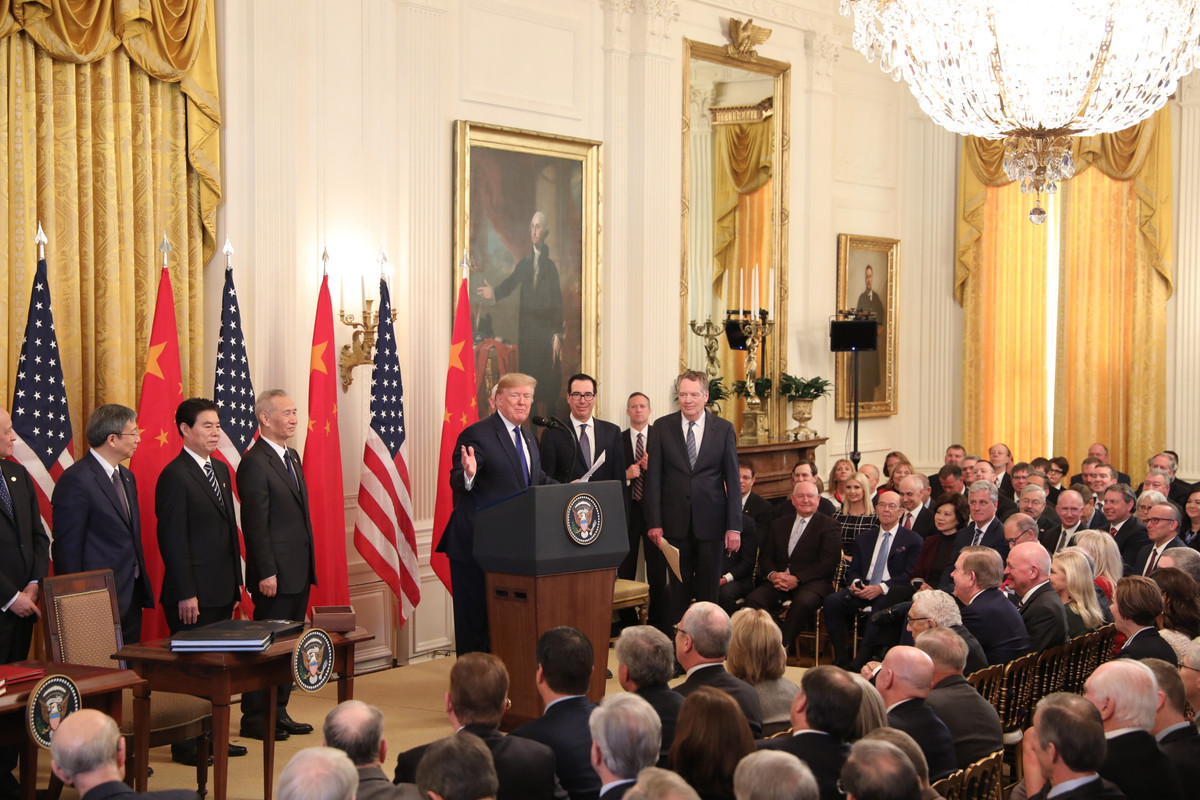 The deal, agreed in mid-December following a dozen rounds of negotiations led by China's top trade negotiator Liu He and US Trade Representative Robert Lighthizer, was signed by US President Donald Trump and China's Vice-Premier Liu He at a ceremony at the East Room of the White House, which was attended by about 200 representatives from business, government and diplomatic circles.