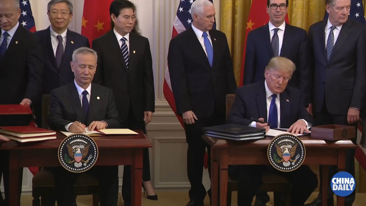 China and the United States signed the long-awaited phase-one trade deal on Thursday morning Beijing Time, signaling a thaw in economic and trade relations between the world's two largest economies after nearly two years of trade friction.