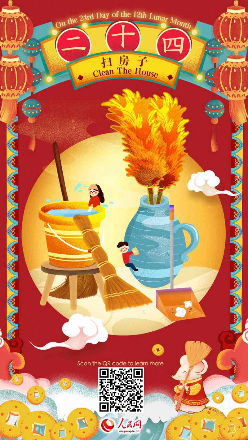 On the 24th day of the twelfth lunar month, it is convention for Chinese people to clean their houses. The custom is said to symbolize cleaning away the dirt and filth of the past year so as to embrace a brand new beginning.