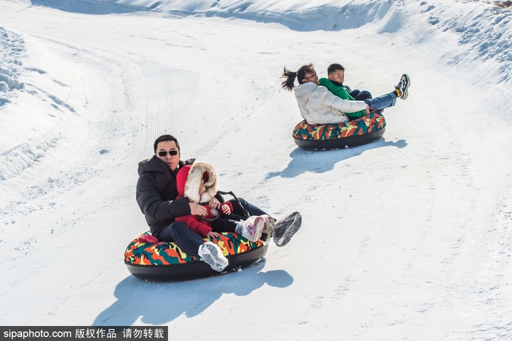 Tourists enjoy themselves in a ski resort in Qingzhou, east China's Shandong province on Jan. 20, 2019. (Photo/sipaphoto.com)