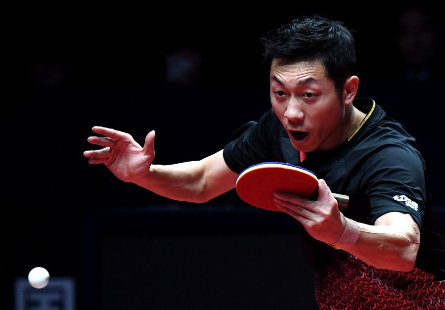 Xu Xin of China competes during the men's singles semifinal match against his compatriot Ma Long at the 2019 ITTF World Tour Grand Finals in Zhengzhou, central China's Henan Province, Dec. 14, 2019. (Xinhua/Li An)