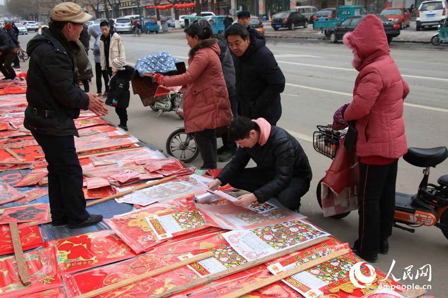 Citizens buy New Year paintings to welcome the upcoming Chinese Spring Festival in Weifang, east China's Shandong Province, Jan. 20, 2020. (Photo/Liu Jing)