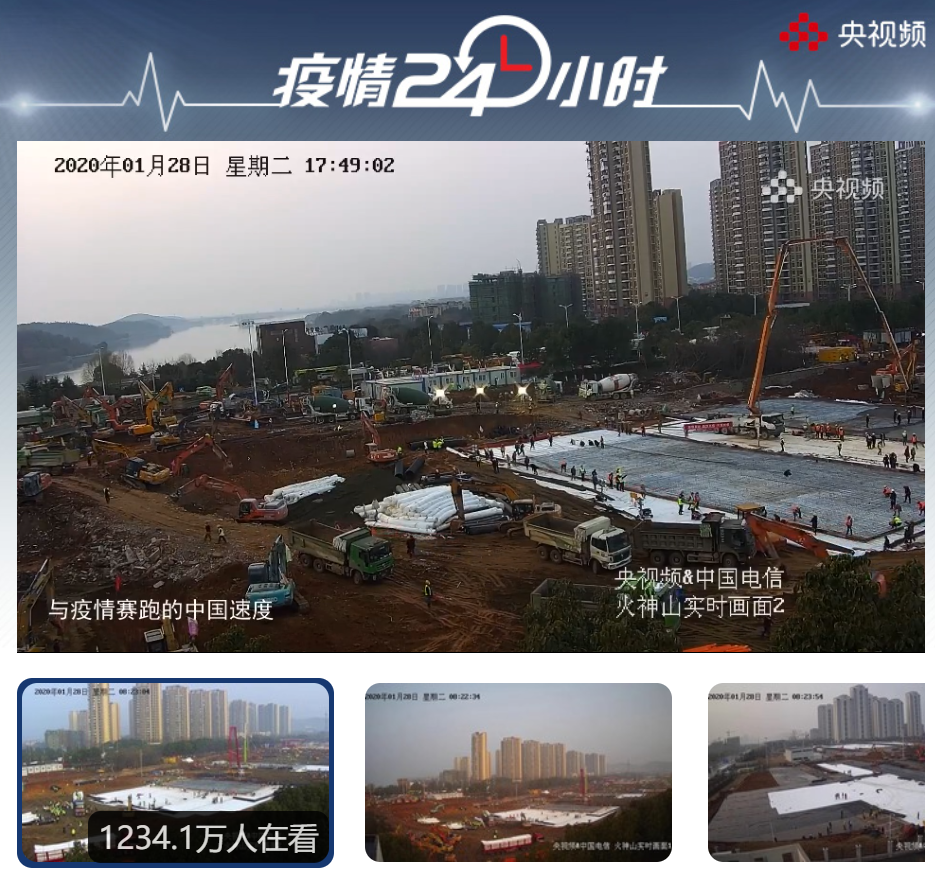 A snapshot of the livestreaming of the construction of Huoshenshan Hospital