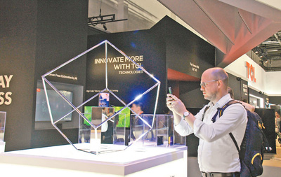 A visitor takes photos of a Chinese smartphone at an expo. (People's Daily/Feng Xuejun)