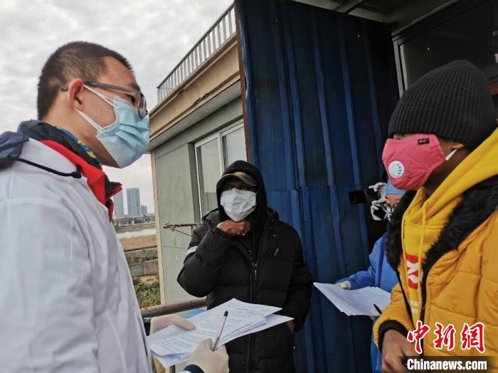 A volunteer explains epidemic prevention to international students in Zhenhai District, Ningbo City. (Photo/Chinanews.com)