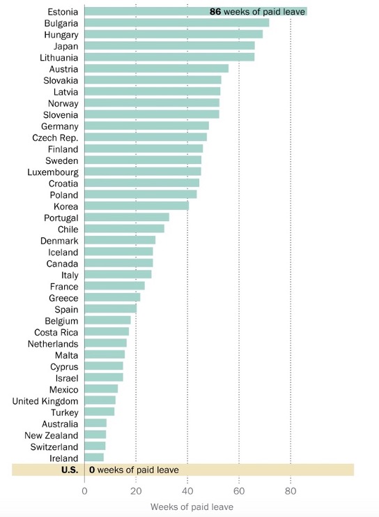 Weeks of government-mandated paid leave (Source: Organization for Economic Cooperation and Development Family Database)