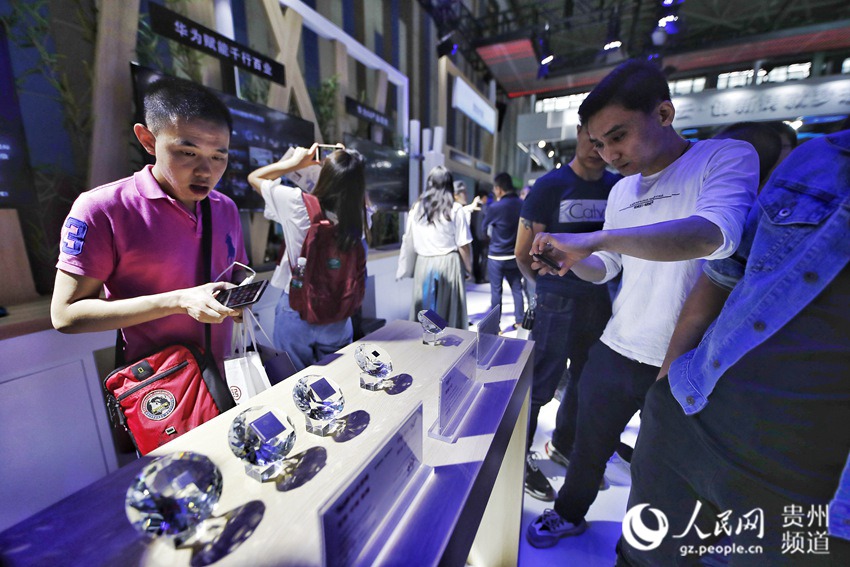 Visitors watch 5G chips developed by Huawei at an expo in Guiyang, southwest China’s Guizhou province. (Photo/Luo Jia)