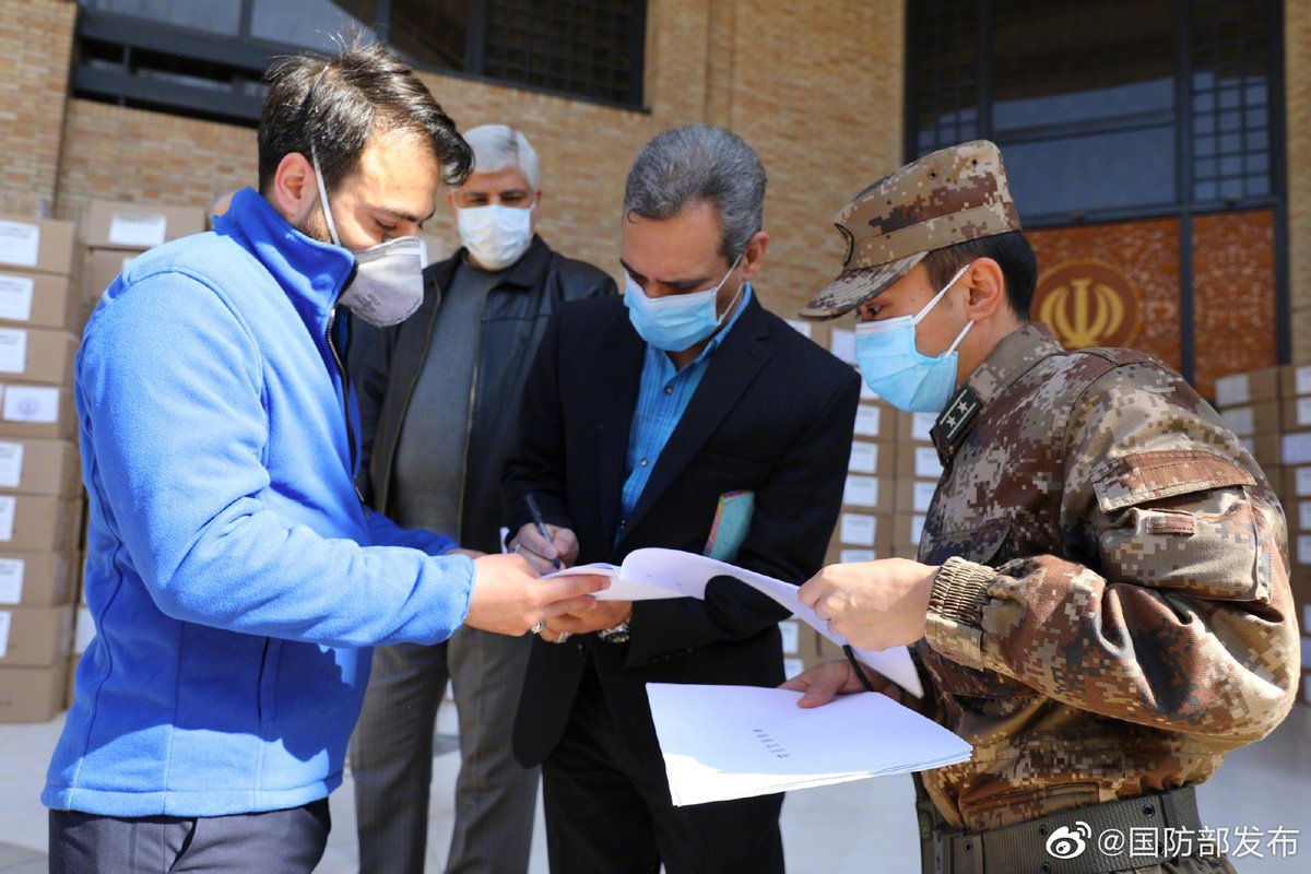 Medical materials donated to the Iranian armed forces from the Chinese military arrive in Iran on March 19, 2020. [Photo/Official Weibo account of information office of the Chinese Defense Ministry]