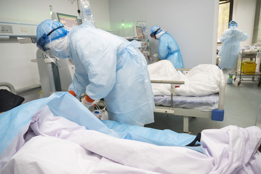 Medical workers conduct hemodialysis treatment for uremic patients recovering from COVID-19 infection at Hankou Hospital in Wuhan, capital of central China's Hubei Province, March 21, 2020. (Xinhua/Cai Yang)