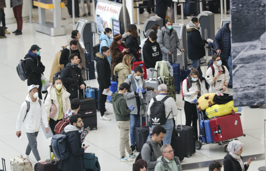 Passengers wait to depart at John F. Kennedy International Airport in New York, the United States, March 13, 2020. (Xinhua/Wang Ying)