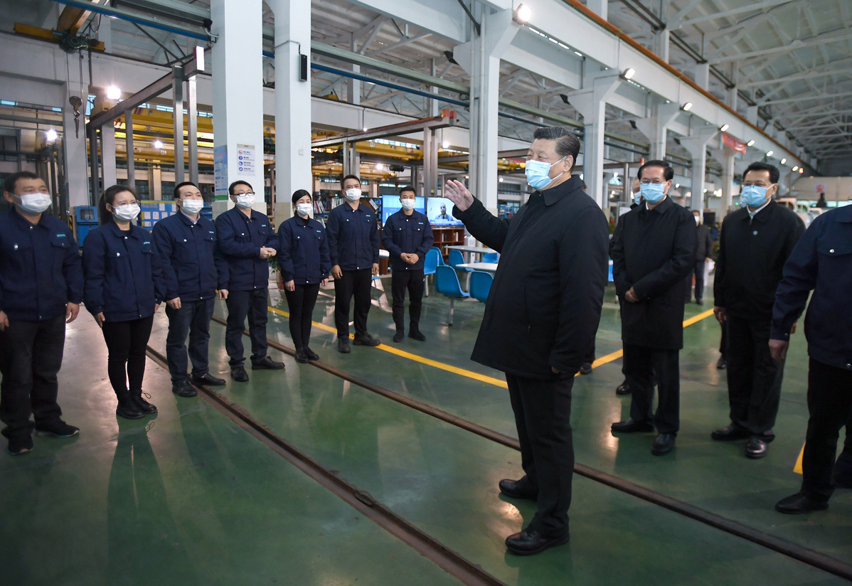 President Xi Jinping inspects an industrial park producing auto parts and molds in Ningbo, East China's Zhejiang province, on March 29, 2020. [Photo/Xinhua]