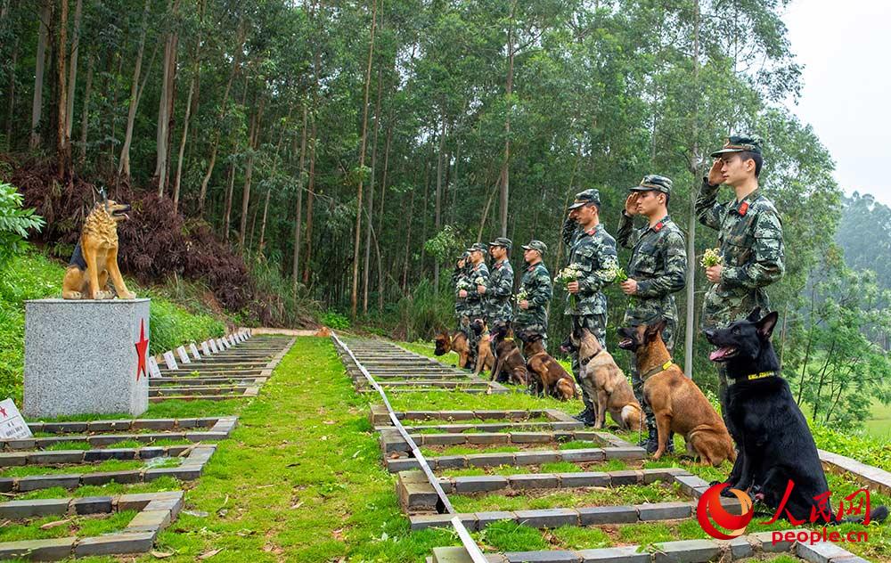 Soldiers of Armed Police Force pay tribute to military dogs (3)