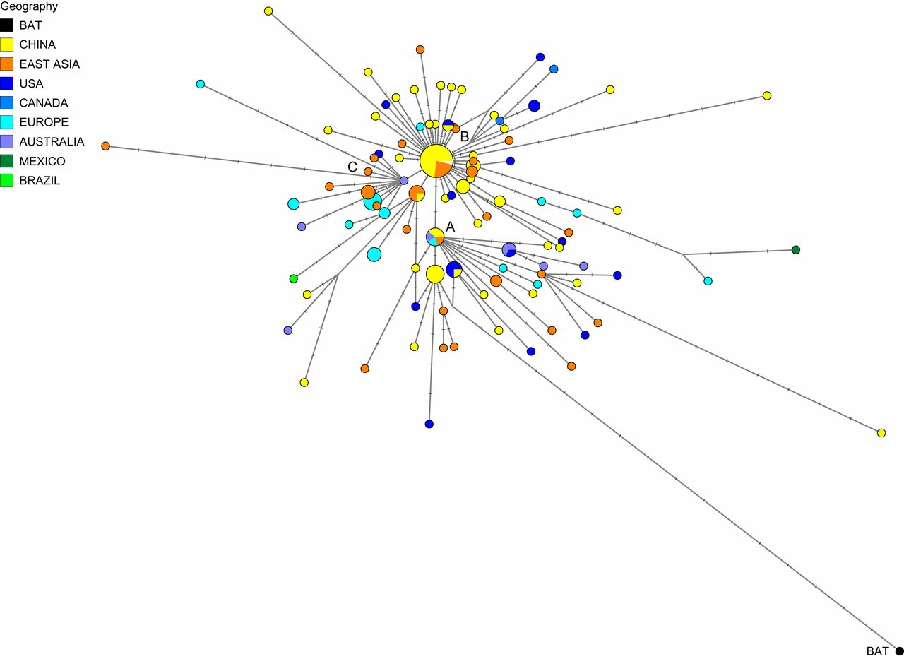 What is believed to be the earliest known strain of the virus, most closely related to that found in pangolins and bats, is termed by the scientists as "Type A." This variation is commonly found in the U.S. and Australia. Type A appears to have mutated into "Type B," which then evolved into a "Type C," which is the predominant strain found in Europe.