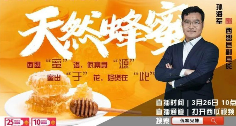 On March 26, Sun Haijun, Deputy Magistrate of Ximeng Wa Autonomous County, was disguised as a streamer to recommend the natural honey products produced in Ximeng to millions of net friends via the ixigua platform.