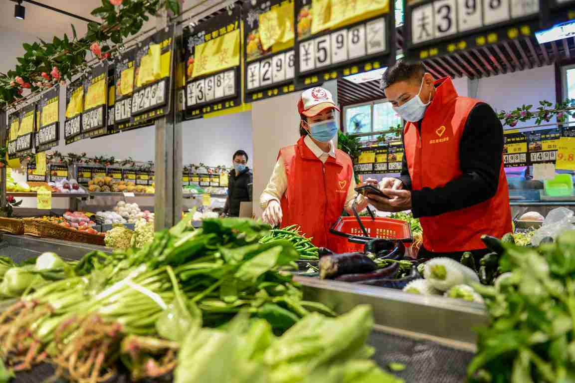 Volunteers buy living materials for residents under home quarantine in Yubei District, southwest China’s Chongqing Municipality, March 18, 2020. Wan Nan/People’s Daily Online