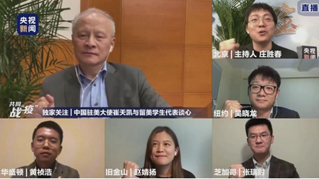 The overseas students are not alone in the fight against the novel coronavirus. On March 18, Cui Tiankai, Chinese ambassador to the U.S., spoke with student representatives in America online, giving advice on whether they need to come back to China amid the epidemic and giving them a boost of confidence.