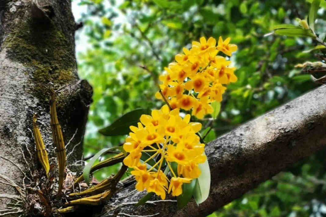 2020 is the first year for dendrobium being elected as the city flower of Pu'er. In April, strolling along Chacheng Avenue and Zhenxing Avenue in the central urban area of Pu'er city, people could see dendrobium flowers of various colors attaching to big trees, dazzling in the large green.