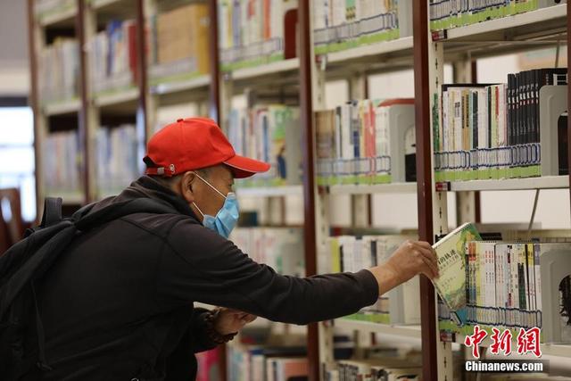 A reader takes a book from a shelf of the Tongzhou District Library on May 7. (Photo/Chinanews.com)