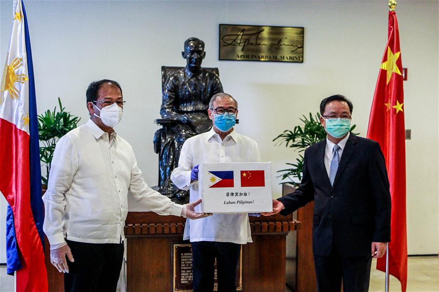 In a ceremony at the Department of Foreign Affairs headquarters, Chinese Ambassador Huang Xilian handed over the donations to Philippine Foreign Secretary Teodoro Locsin and Presidential Peace Adviser Carlito Galvez, chief implementer of the Philippine government's action plan to combat COVID-19.