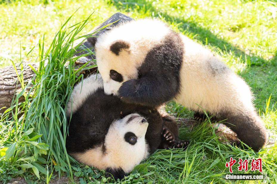 Panda twins Meng Yuan (above) and Meng Xiang (below) play at the Berlin Zoo. Photo courtesy of the Berlin Zoo