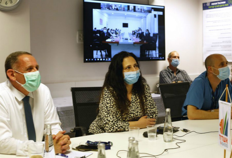 Israeli medical experts attend a video meeting on the prevention and treatment of COVID-19 with Chinese medical experts in Wuhan, in the central Israeli city of Ashdod on March 23, 2020. (Photo by Gil Cohen Magen/Xinhua)