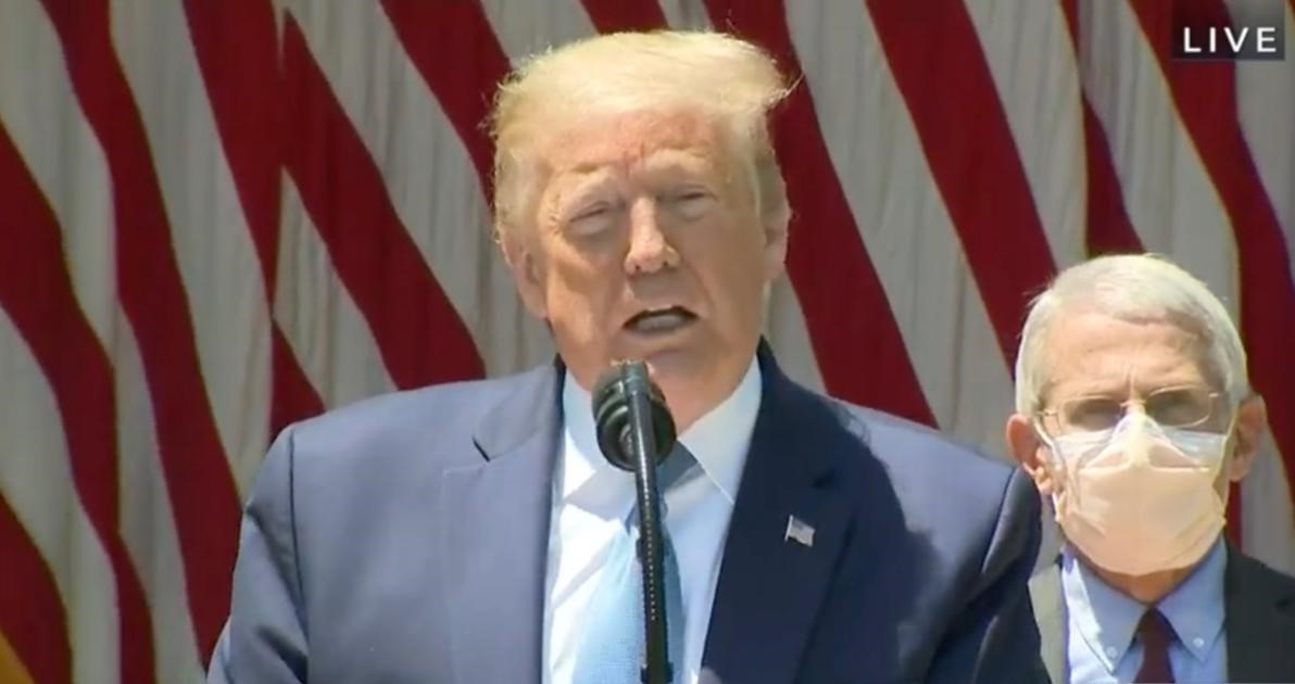 US president Donald Trump said NIH began developing COVID-19 vaccine on January 11 at a press conference on May 15. (Screenshot from C-Span)