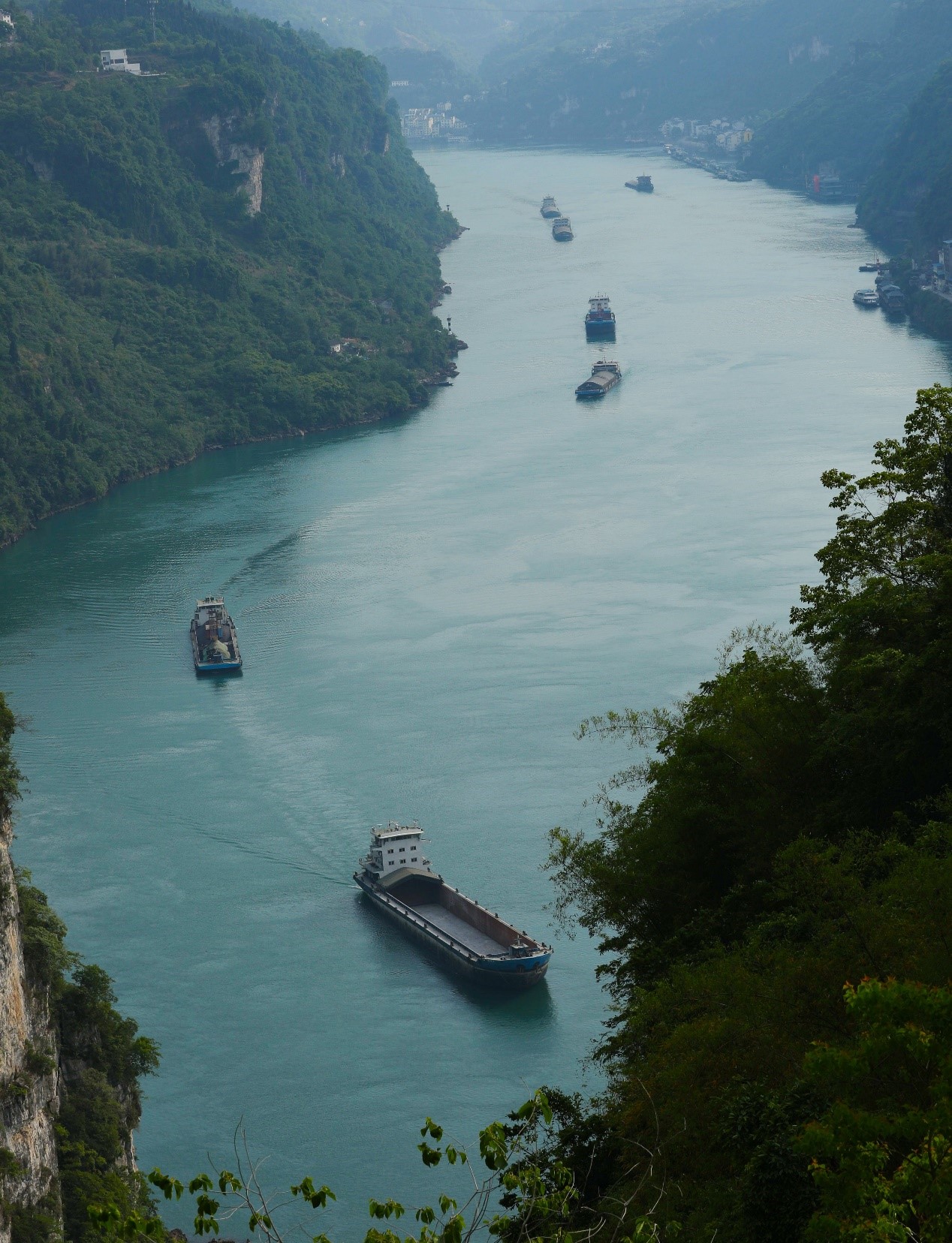 A ship transports materials in a valley of Yichang, central China's Hubei province, May 1. Photo by Huang Shanjun, People's Daily Online