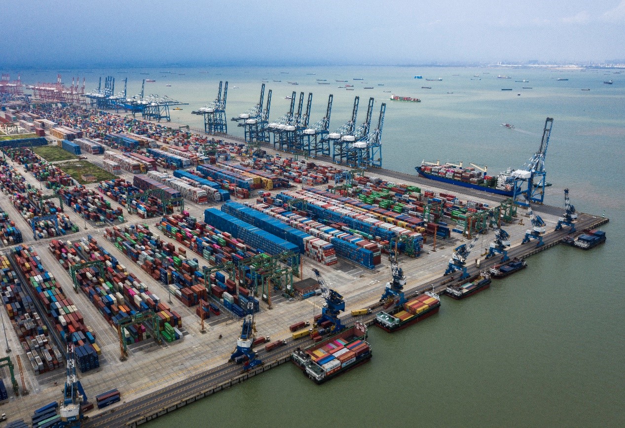 Container vessels dock at a terminal in Nansha district, Guangzhou, south China's Guangdong province, May 10. Photo by Qiu Xinsheng, People's Daily Online