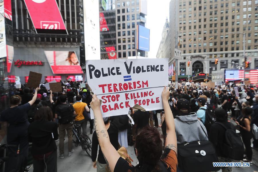 People protest over the death of George Floyd in New York, the United States, June 1, 2020. (Xinhua/Wang Ying)