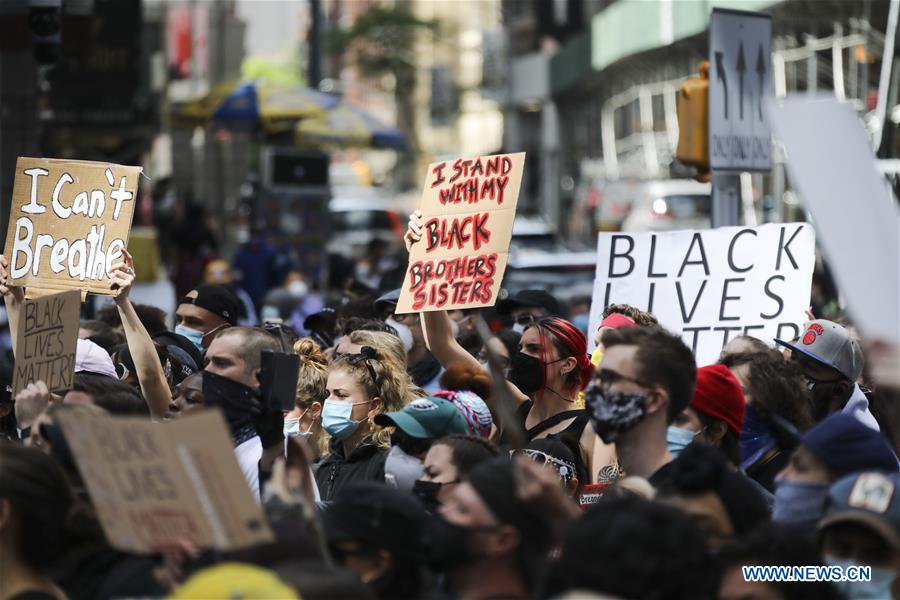People protest over the death of George Floyd in New York, the United States, June 1, 2020. (Xinhua/Wang Ying)