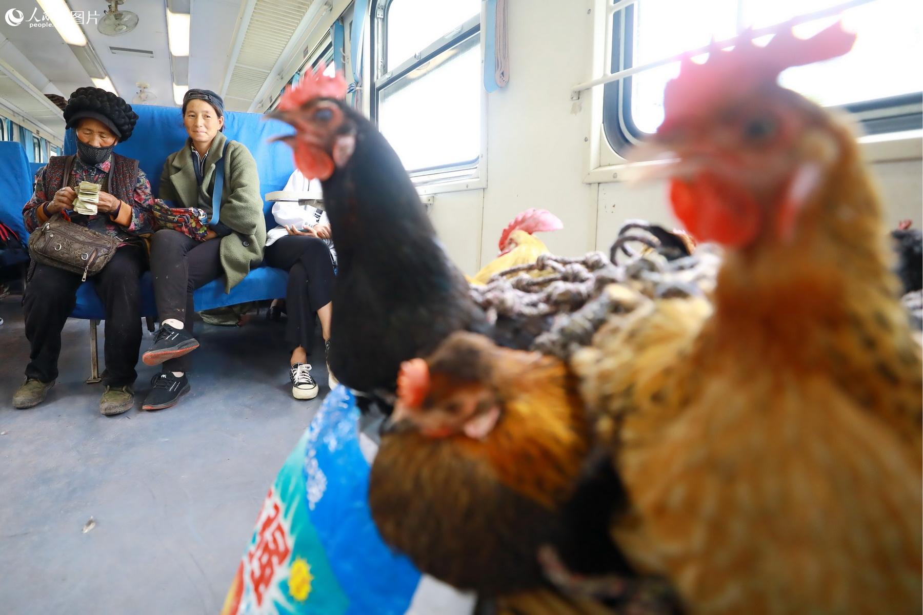 Local people of the Yi ethnic group use these "little slow trains” to bring their own crops, poultry and local products to sell in the county.