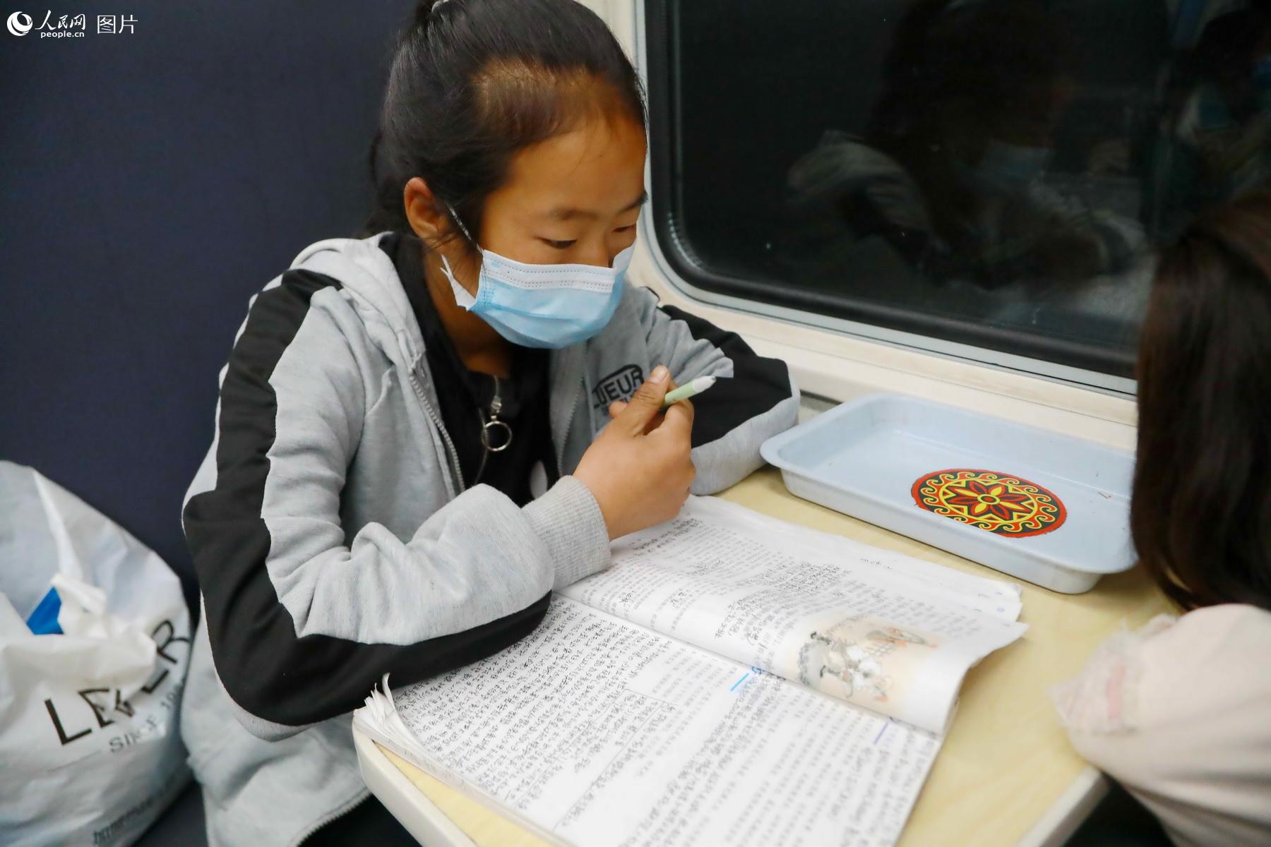 The photo shows a girl studying on Train No. 5633 on May 17. (Photo/Li Kai)