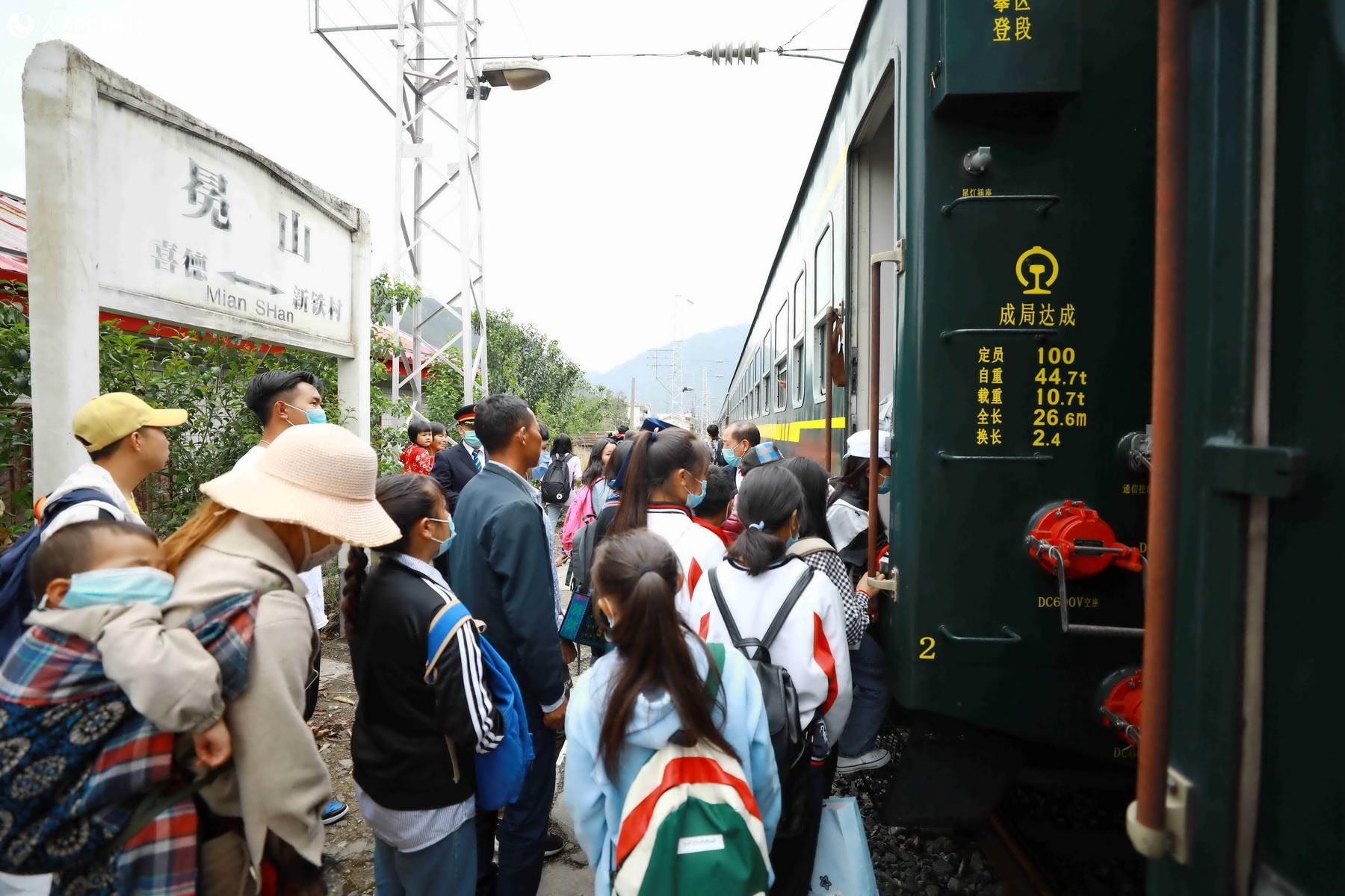 Local people of the Yi ethnic group are turning to the famous low-speed green trains that run from Chengdu, capital of southwest China's Sichuan province, and Kunming, capital of southwest China's Yunnan Province, to boost their incomes.