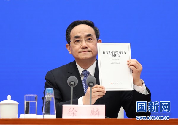 Xu Lin, deputy head of the Publicity Department of the Communist Party of China Central Committee and director of the State Council Information Office, introduces a white paper on China’s fight against COVID-19 at a press conference, June 7. (Photo by Xu Xiang, courtesy of scio.gov.cn)