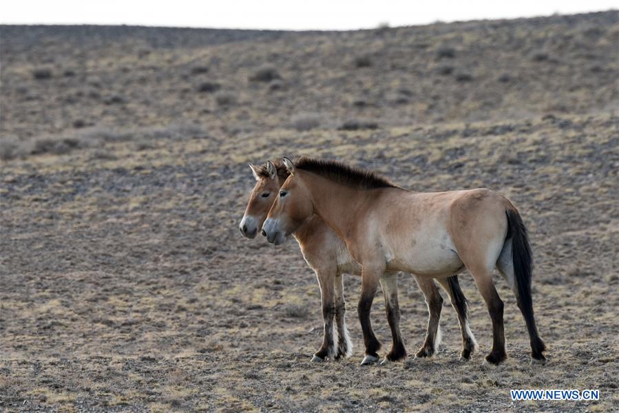 Przewalski's horses are seen at the Kalamayli Nature Reserve, northwest China's Xinjiang Uygur Autonomous Region, June 4, 2020. (Xinhua/Ding Lei)