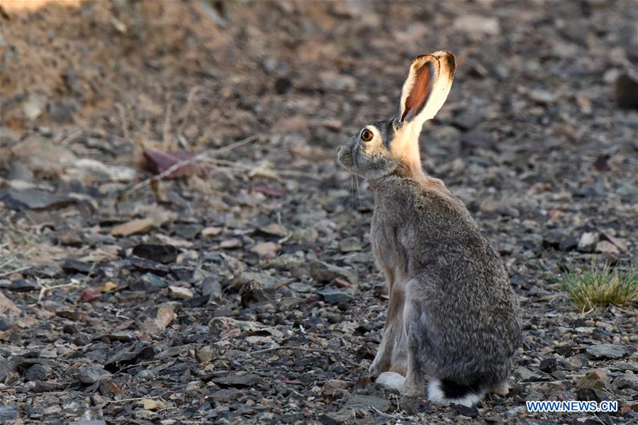 A rabbit is seen at the Kalamayli Nature Reserve, northwest China's Xinjiang Uygur Autonomous Region, June 4, 2020. (Xinhua/Ding Lei)