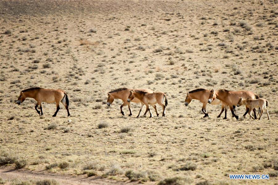 Przewalski's horses are seen at the Kalamayli Nature Reserve, northwest China's Xinjiang Uygur Autonomous Region, June 3, 2020. (Xinhua/Ding Lei)