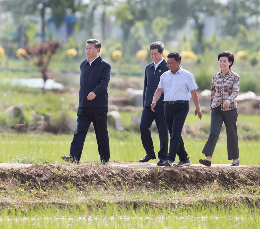 Chinese President Xi Jinping, also general secretary of the Communist Party of China Central Committee and chairman of the Central Military Commission, visits a rural ecotourism park to learn about the development of local signature agriculture in Helan County, northwest China's Ningxia Hui Autonomous Region, June 9, 2020. Xi on Tuesday inspected the city of Yinchuan during his trip to Ningxia. (Xinhua/Wang Ye)