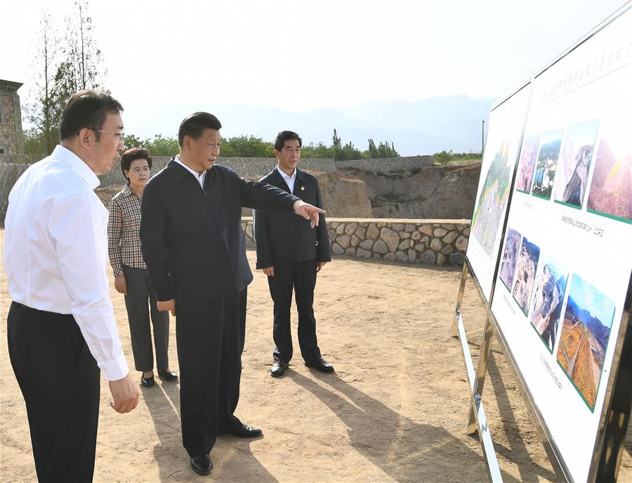 Chinese President Xi Jinping, also general secretary of the Communist Party of China Central Committee and chairman of the Central Military Commission, visits a vineyard near the Helan Mountains to learn about the efforts on strengthening the ecological conservation of the mountains, in northwest China's Ningxia Hui Autonomous Region, June 9, 2020. Xi on Tuesday inspected the city of Yinchuan during his trip to Ningxia. (Xinhua/Xie Huanchi)