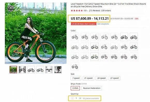 Chinese bicycles targeting the Spanish market were almost sold out on AliExpress. (Data from AliExpress)