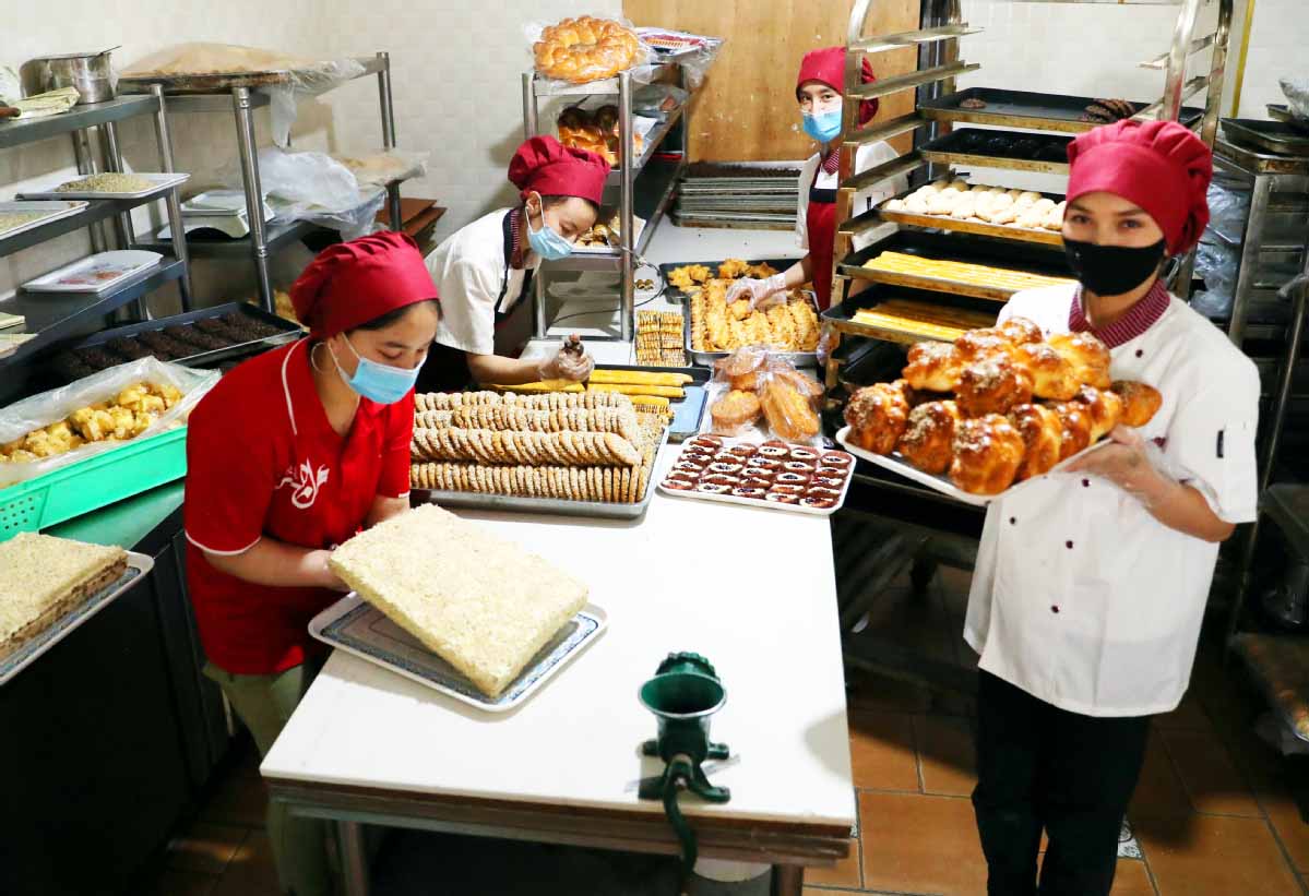 Workers produce bakery products in April at a food factory in Urumqi, Xinjiang Uygur autonomous region. ZHANG XIUKE/FOR CHINA DAILY