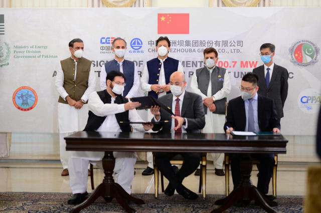 The signing of the agreement between China Gezhouba Group, the investor of the project, and the Pakistani side was witnessed on Monday by Pakistani Prime Minister Imran Khan, Chinese ambassador to Pakistan, ministers and representatives of the project partners.