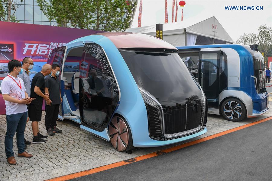 Visitors view concept vehicles during an event showcasing the products and culture of China's iconic auto brand Hongqi in Changchun, northeast China's Jilin Province, July 28, 2020. (Xinhua/Zhang Nan)
