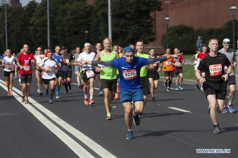 Runners compete during the Moscow Half Marathon in Moscow, Russia on Aug. 2, 2020. (Photo by Alexander Zemlianichenko Jr/Xinhua)